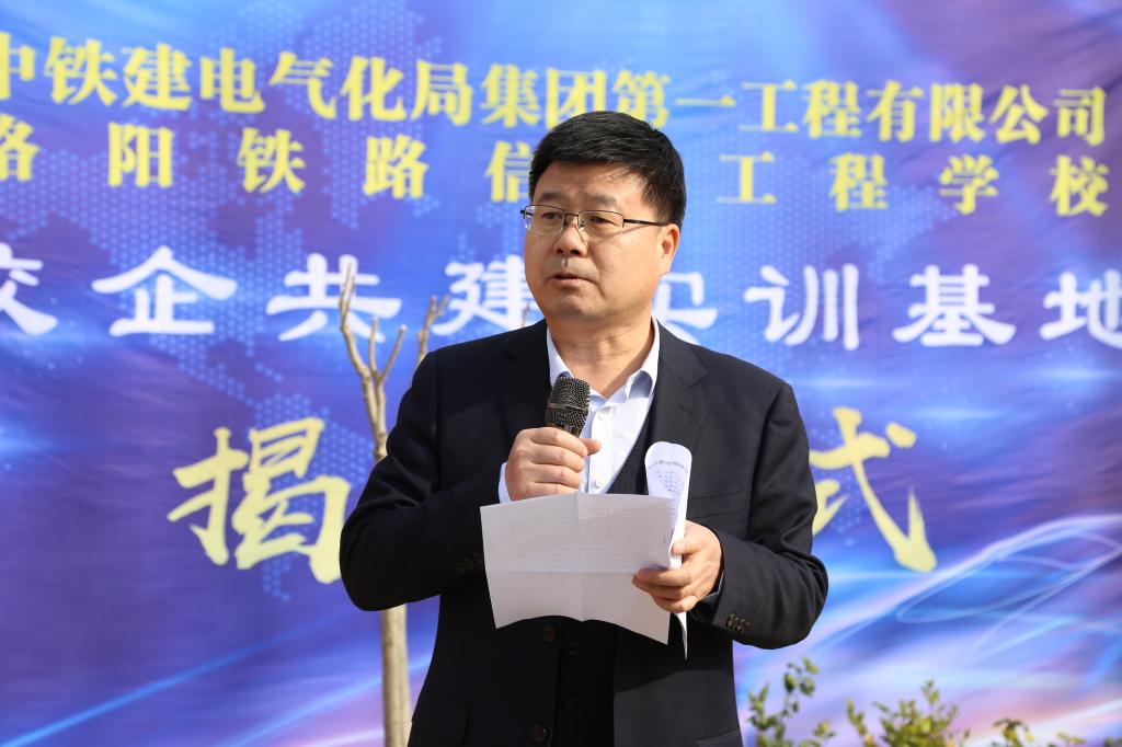 李林榕在揭牌仪式上进行了讲话,他表示,洛阳铁路信息工程学校与中铁建电气化局集团第一工程有限公司同根同源、同处一城、同向而行,结下了深厚的兄弟情谊。接下来,我校将以此次实训基地揭牌为契机,以深化产教融合校企合作为抓手,发挥学科资源优势,主动对接,进一步强化定向人才培养,进一步推进科研成果转化,进一步健全资源共享机制,不断增强我校人才供给与中铁建电气化局集团第一工程有限公司发展需要的匹配度,不断提升科研成果与“四电”产业升级的契合度,不断推动实现创新链和产业链的无缝对接和高效整合。
