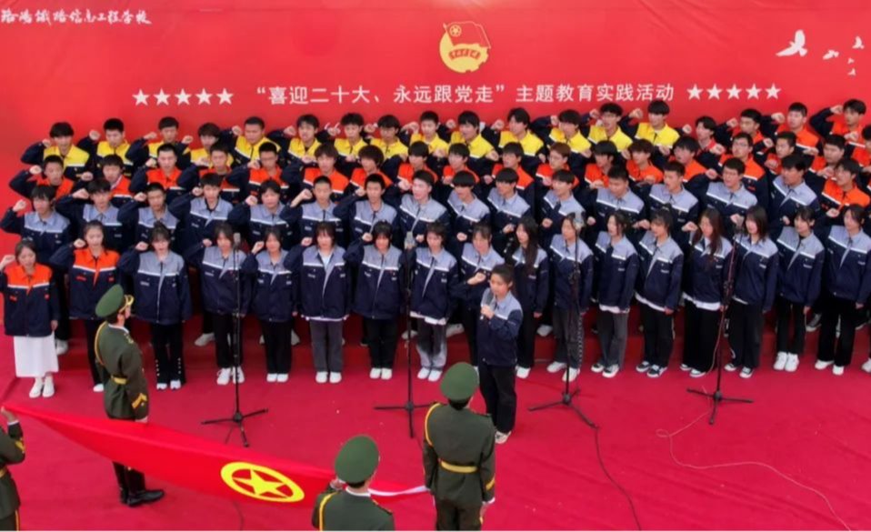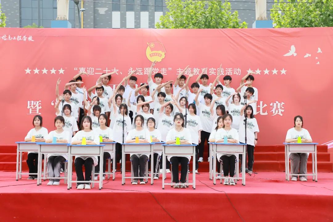 庄严的升旗仪式后,举行了入团宣誓仪式,70余名新团员面对团旗庄严宣誓。21城运3班、21城轨2班、21级3+2信号1班等11个班级通过精彩演唱《稻香》、《中国人民志愿军战歌》、《国家》等时代歌曲,把青春唱给党听,展现洛铁学子青春风采。
