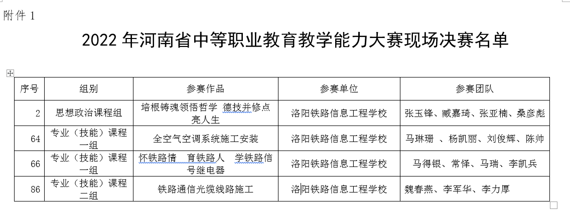 近日,河南省中等职业教育技能大赛组委会下发《关于举办2022年河南省中等职业教育教学能力大赛现场决赛的通知》,我校4个参赛教学团队入围现场决赛。