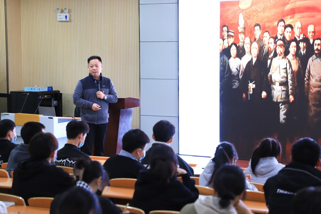 仪式结束后,史亚非以《中国共产党的历史》为主题,讲述了中国共产党人的艰苦奋斗史,强调了党在国家发展中的历史性决定作用和党与团之间的关系。