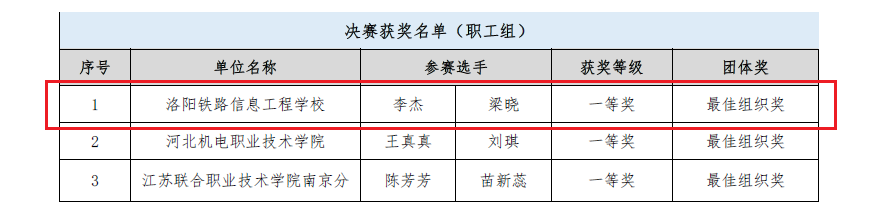 一直以来,我校高度重视师生实践能力培养与专业技术发展,在全校形成了良好的技能大赛训练机制。本次大赛不仅展现了我校师生的拼搏精神和个人风采,更展示了我校以赛促教、以赛促学、以赛促技、以赛促改的职业教育改革创新成果。我校将继续努力,积极探索相关专业建设、课程建设与教学模式的发展,切实提高教学质量和人才培养水平。