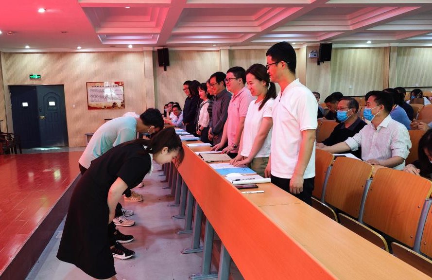 会议举行了庄重的“拜师仪式”,全体指导教师和青年教师共同签署师徒结对协议书,青年教师向指导教师行“拜师礼”,双方正式结为“师徒”;李力厚向指导教师颁发聘书,并向青年教师发放了成长手册。
