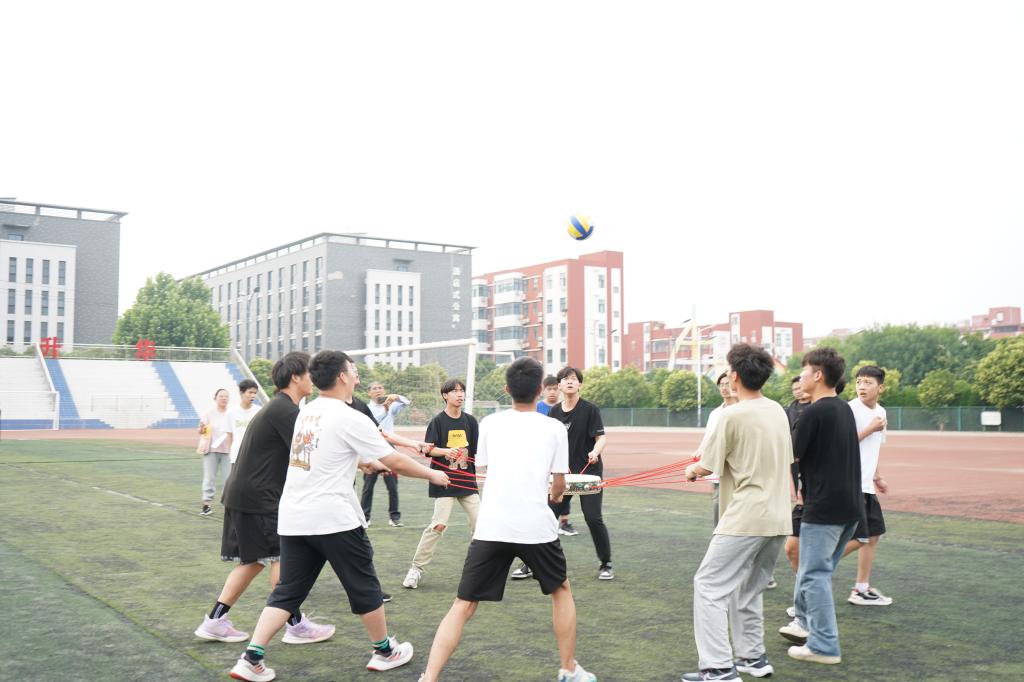 本次趣味运动会共设击鼓颠球、袋鼠跳、毛毛虫、合力吹气球、无敌风火轮、神笔马良、五人四足、不倒森林、套圈圈、集体跳大绳10个项目。相比于传统的运动会,趣味运动会在考验学生体力耐力,运动技巧之外,更注重趣味性,旨在通过营造轻松、和谐、愉悦的活动氛围,舒缓师生因天气燥热、学习工作压力较大产生的焦躁、压抑情绪,增进学生、老师之间沟通交流,培养学生团队合作意识,增强学生的集体荣誉感。如神笔马良项目,既考验学生的运动协调能力,更考验学生的沟通交流、团队协作能力。赛场上,师生们身姿腾挪,欢呼跳跃,尽享运动带来的愉悦。