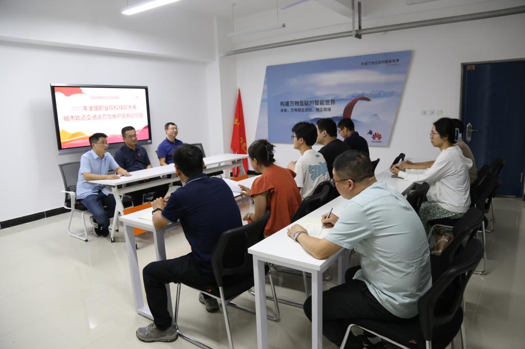 为进一步支持和鼓励我校师生积极备战2023年全国职业院校技能大赛城市轨道交通运营与维护赛项国赛,力争在大赛中取得好成绩。8月24日下午,我校在四号实训楼110室召开2023年全国职业院校技能大赛城市轨道交通运营与维护赛项国赛动员会。校领导于庆斌、李力厚,教学工作部、轨道信号工程系、电信工程系相关负责人,全体国赛选手及辅导教师参加了本次会议。会议由教学工作部副部长付俊主持。