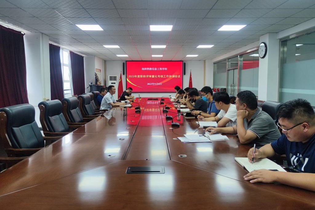 9月6日下午,我校在图书信息楼四楼会议室召开2023年度职称评审量化考核工作协调会。校领导于庆斌、人事科、教务科、学生工作部及相关部门主要负责人参加会议。会议由人事科科长盛廷良主持。
