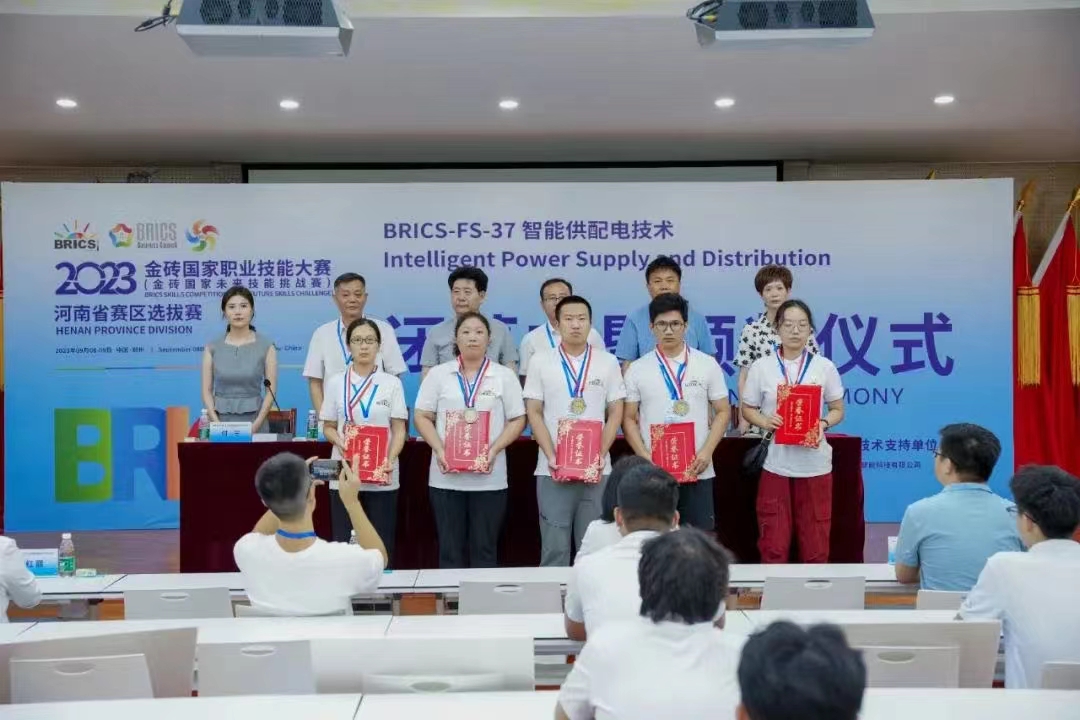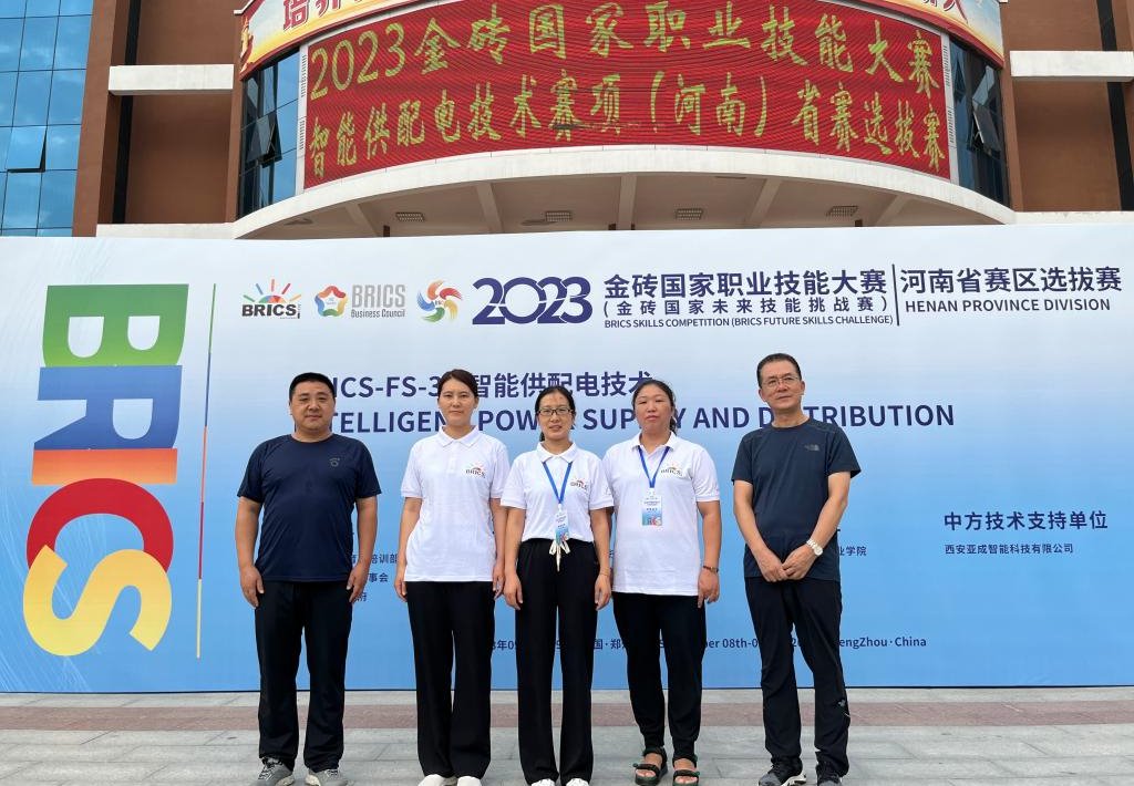9月8日至9日,2023金砖国家职业技能大赛智能供配电技术赛项河南省赛区选拔赛在郑州轨道工程职业学院举办。我校代表队与其他高职院校同台竞技,经过两天激烈角逐,我校教师张楠、王丹阳、靳娜娜获得三等奖,马雪芹、李旭明获优秀指导教师。
