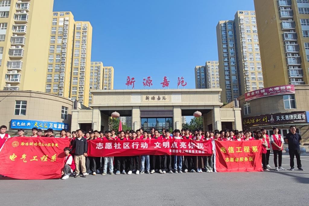 为积极响应创建全国文明城市的号召,深入拓展广大青年学生参与社会新时代文明实践活动,根据伊滨区文明创建办部署,9月22日,我校组织轨道信号工程系、电气工程系、电信工程系师生志愿者100余人前往新源嘉苑小区助力“星级文明社区”创建工作。