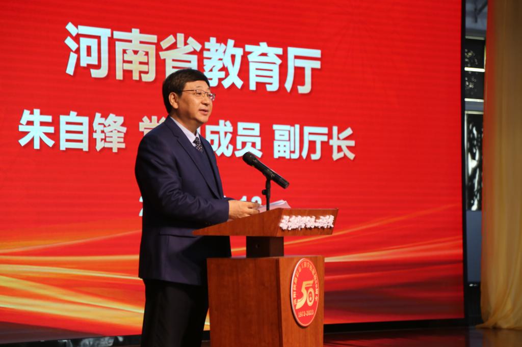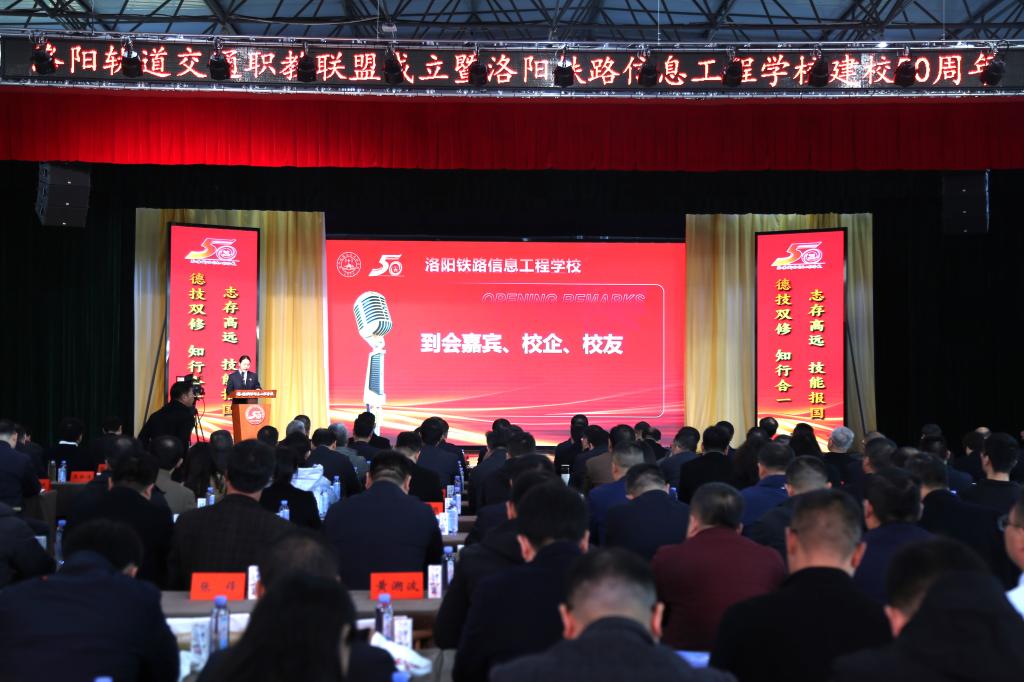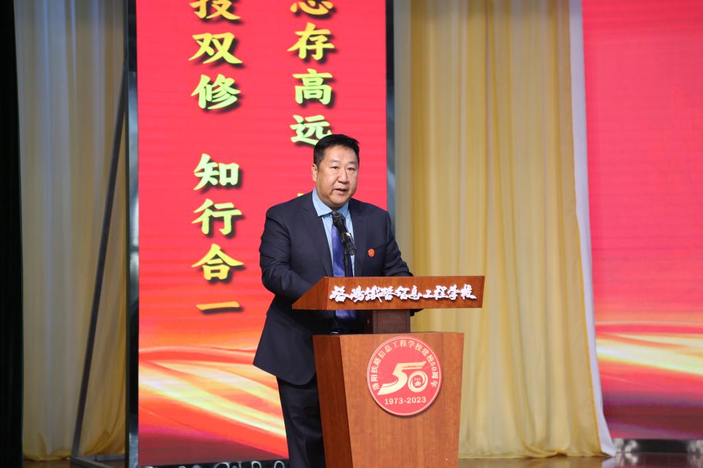 朱自锋指出,洛阳铁路信息工程学校筚路蓝缕以启山林的五十年,也是中国铁路事业弯道超车、领先世界的五十年;学校栉风沐雨风雪载途的五十年,也是河南职业教育由弱到强、破冰迎春的五十年;学校披荆斩棘勇于跨越的五十年,也是河南省科学发展、中原崛起的五十年。希望学校坚持学生发展中心,落实立德树人根本任务;坚守铁路办学初心,培育守正创新铁路工匠;坚定中原崛起决心,服务区域经济社会发展,充分发挥政策优势、地域优势、专业优势,积蓄教研力量、服务力量、人才力量,在中国式现代化建设的河南实践中讲好洛铁故事、发出洛铁声音、贡献洛铁智慧。