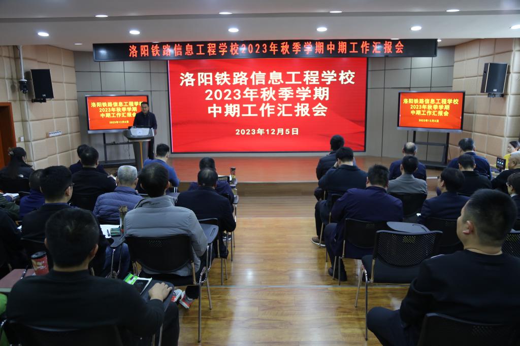 为深入学习贯彻习近平新时代中国特色社会主义思想,检验前期工作落实情况,激发学校各部门干事创业积极性和主动性,促进事业高质量发展。12月5日下午,我校在智慧大讲堂召开2023年秋季学期中期工作汇报会,全校中层及以上干部、各分校区代表、教研室主任参加会议。校党委副书记于庆斌主持会议。