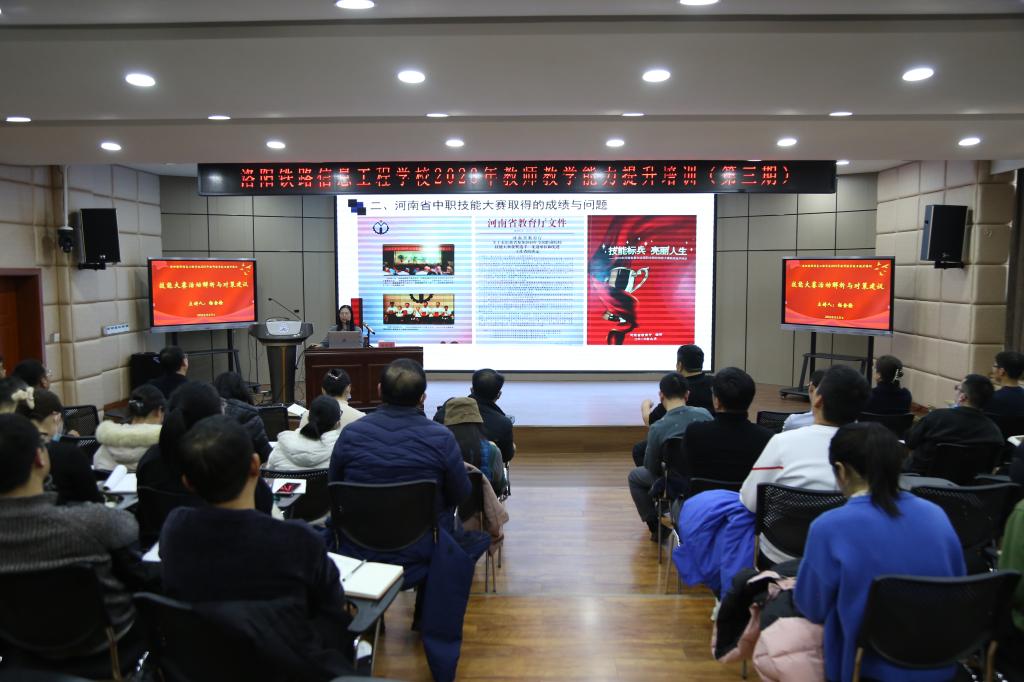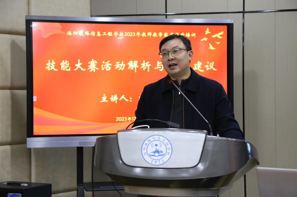 为进一步深化我校人才培养模式改革,推进岗课赛证融合,提升职业教育适应性。12月21日下午,我校在智慧大讲堂举办2023年度教师教学能力提升第三期培训,邀请河南省教育规划与评估院杨金栓教授进行授课。校领导李林榕、尹亚波、李力厚,全体中层干部,各教研室主任、学术技术带头人和骨干教师代表等共100余人参加了本次培训。培训活动由副校长李力厚主持。