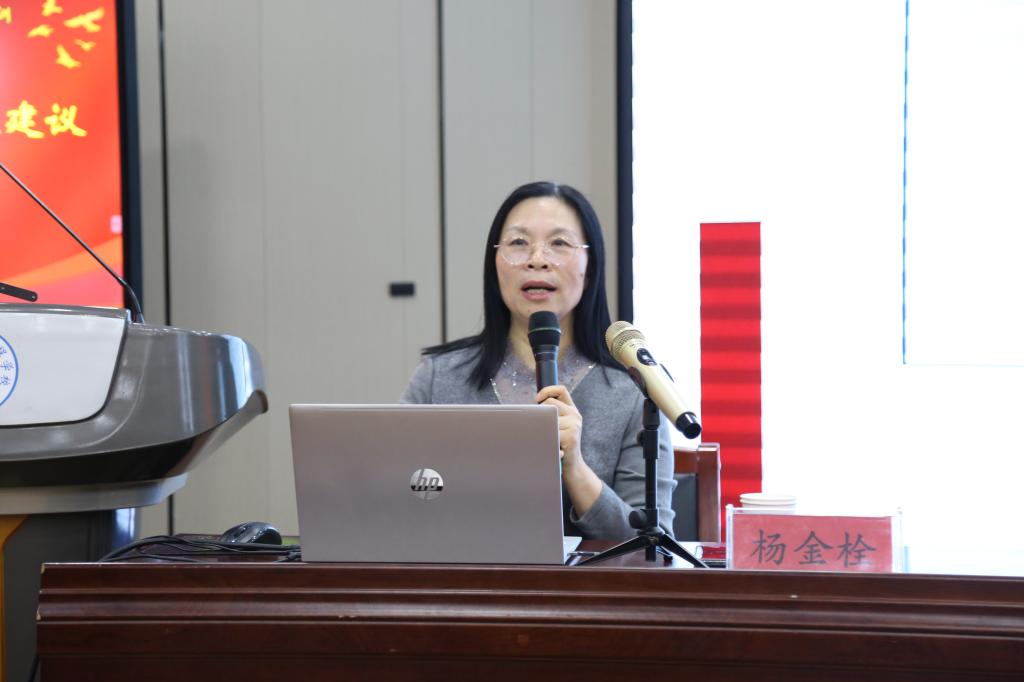 杨金栓教授以《技能大赛活动解析与对策建议》为题,回顾和总结了我省职业教育竞赛活动的发展历程与背景、取得的成绩与问题、举措与创新等内容;她结合实际的工作案例,从竞赛文件制定、赛事组织、全员化开展等方面,深入浅出地对2023年全省职业教育竞赛活动的政策进行了分析和解读,并对我校如何推动竞赛活动的全员化、教学化,深化赛教融合,提升竞赛成绩和育人质量,提出了宝贵的指导意见和对策建议。会后,校党委书记李林榕向杨金栓颁发了客座教授荣誉证书。