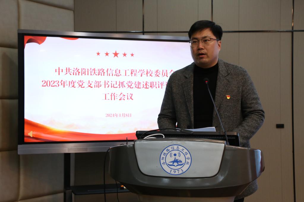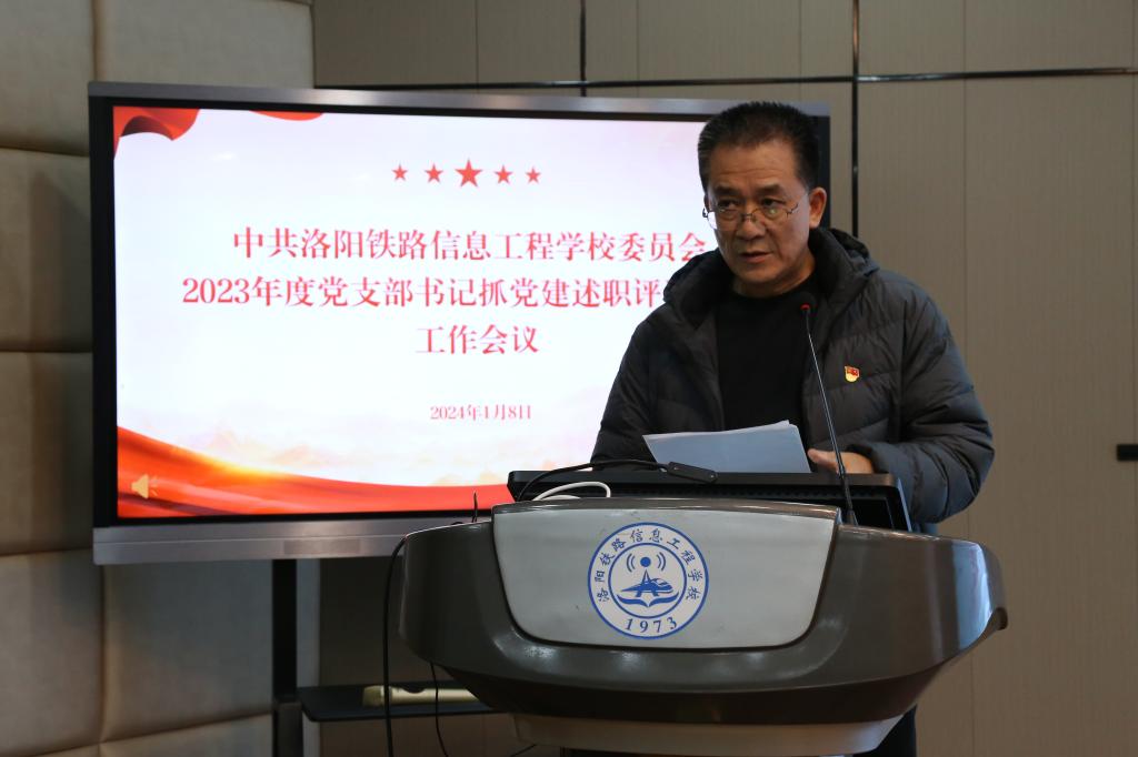 校党委书记李林榕对各支部述职进行总结点评,他指出各支部书记政治站位较高,汇报内容立意较新,总结工作全面,分析问题客观,谋划工作思路清晰。并对2024年工作提出四点意见,第一,不断提升理论水平,扛稳扛牢政治责任。要持续深化主题教育学习成果,一是管好思想,用党的创新理论引领支部建设;二是带好队伍,发挥好党员先锋模范作用和支部战斗堡垒作用;三是抓好作风,要高标准严要求做好党风廉政建设。第二,不断提升育人水平,落实立德树人任务。坚持为党育人、为国育才,将思想教育贯穿于教学工作全过程,持续构建大思政格局。第三,不断提升内涵建设,推动改革事业发展。学校正在提高办学层次的关键节点,要在发展质量上下功夫,优化学校资源,实现学生工作、财务工作二级管理,深化人事制度改革,提升后勤服务质量,构建和谐向上的校园氛围。第四,不断提升干部素养,提供人才保障支撑,完善考核评价与激励机制。全体中层干部应担当作为、履职尽责、踔厉奋发,发扬好洛铁精神,为学校高质量发展作出贡献。