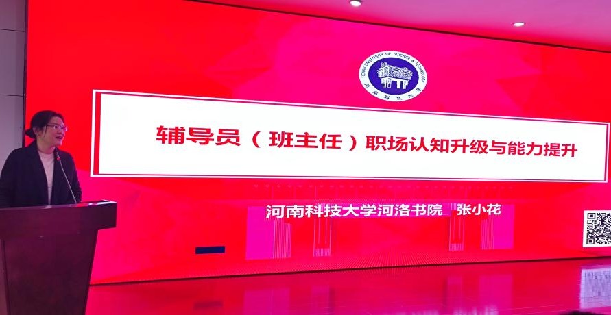 为了进一步明确班主任工作职责,提升班主任队伍综合能力,压实班主任老师对学生的安全责任,2月28日,学工部在思政大讲堂举行了2024年班主任工作培训会,特邀河南科技大学河洛书院党委副书记张小花授课,我校副校长尹亚波出席会议,学工部负责同志,各系、各校区学管负责人以及130余名班主任老师共同参加培训。