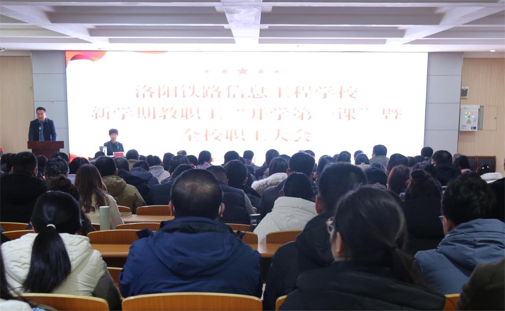 3月4日下午,我校在思政大讲堂召开新学期职工开学第一课暨全校职工大会。洛阳师范学院党委书记郭改英应邀到校授课,校领导班子成员及全体教职工参加会议。校党委副书记、副校长于庆斌主持会议。