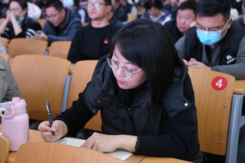 会上,郭改英从学习习近平总书记关于职业教育的重要指示精神引入,结合自身丰富的教育教学和管理经验,重点围绕“学校为什么转型”、“转型关键时期必然面对的问题”、“转型后的准备工作及发展规划”等方面,与我校教职工做了深入交流;就如何提升教学质量、健全机制体制、解放办学思想、打造校企合作命运共同体、提升人才培养“三力”等问题,分享了自己的见解和经验,提出了合理化建议。郭书记的授课站位高远、格局宏大,内容丰富、内涵深刻,既有深入浅出的理论阐述,又有旁征博引的实例分析,更有实践层面的对策思考,对我校进一步明晰发展思路、在新的起点上推进高质量发展具有很强的战略性、针对性、指导性和操作性。