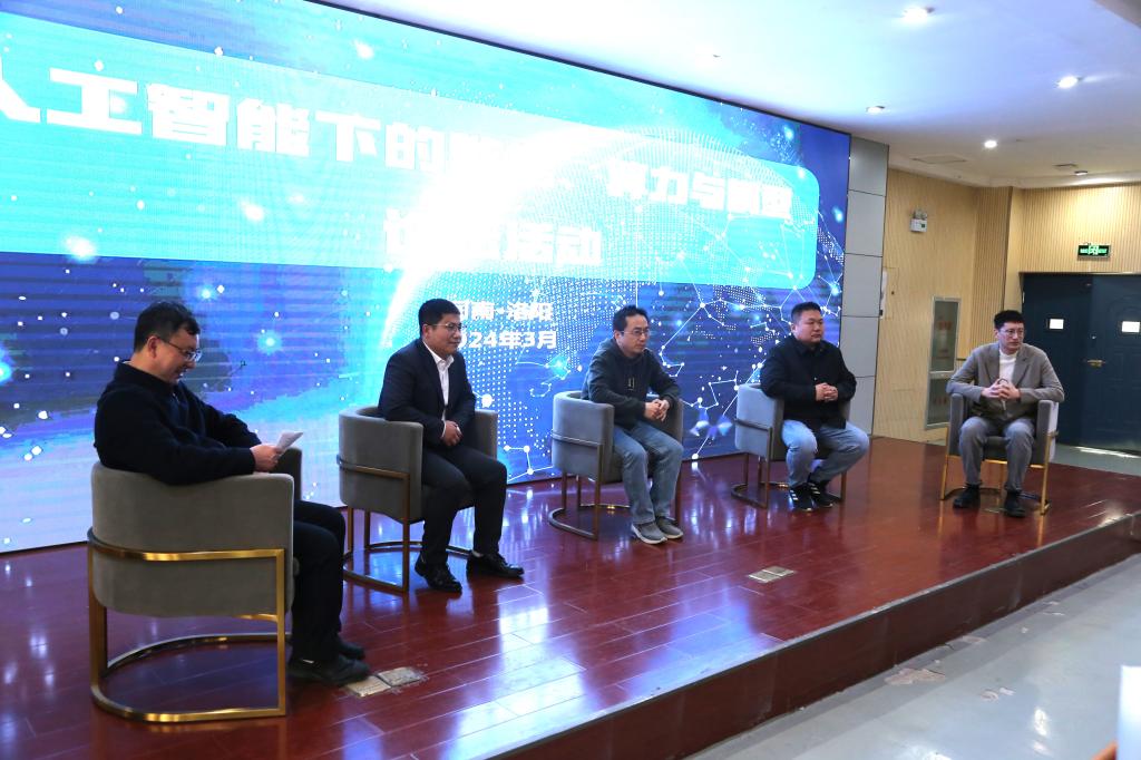 在交流互动环节,行业专家与师生分别从讨论我们在建设算力时如何应对“算力荒”,大数据模型与ChatGPT、文心一言、深度学习、神经网络、遗传算法等之间的关系,人工智能主要的发展方向和对应的岗位,学生如何学习大数据模型与算法等问题进行了深入的交流,现场气氛活跃。