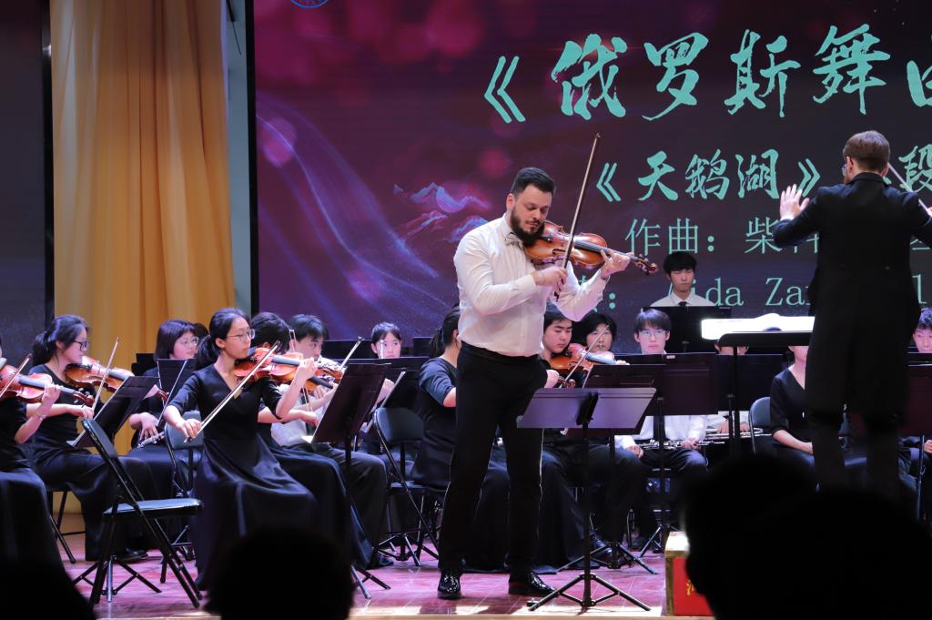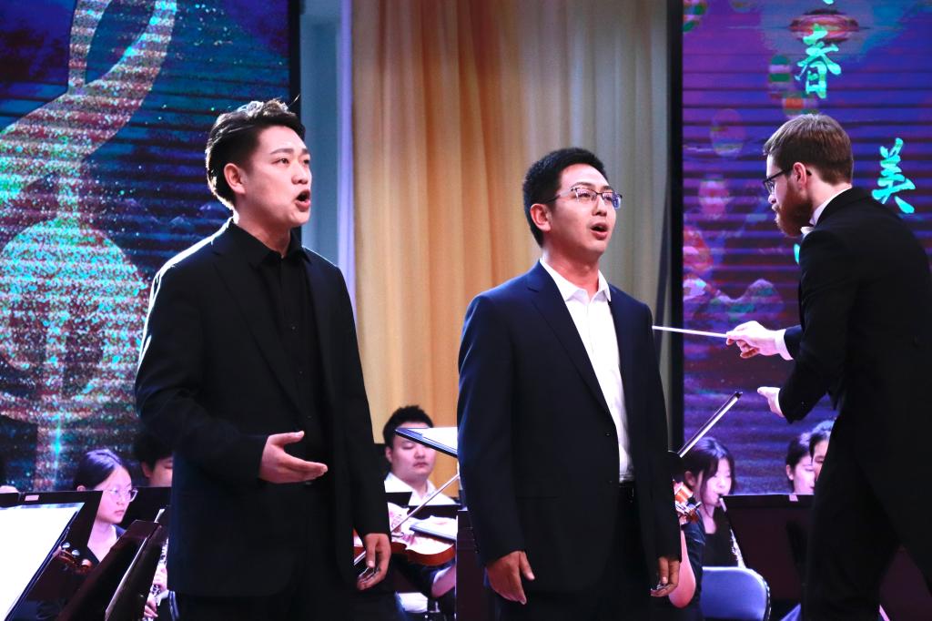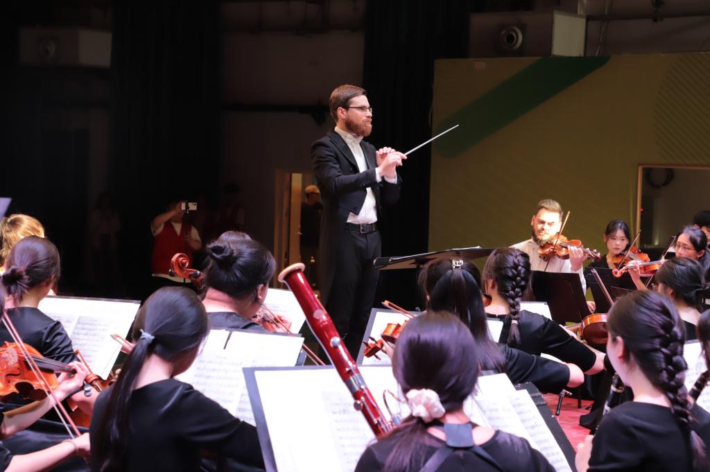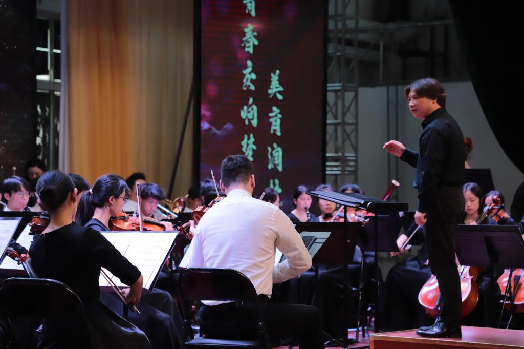 本场演出的曲目丰富多样,既有《花好月圆》《北京喜讯到边寨》等优秀的中国风作品,也有柴可夫斯基、勃拉姆斯等西方音乐巨匠的代表作品,还有《珊瑚颂》、《跟你走》等经典声乐作品。乐团以精湛的技艺、默契的配合为师生们展现了高雅艺术的非凡魅力,演出期间,Andrew Job Davis 指挥以“趣味讲解+现场演奏”的方式,为在场的师生普及了交响乐声部的分类,通过生动形象的讲解让我校师生在感受高雅艺术的同时也让大家认识了各个声部的乐器,感受到了不同乐器的特点及表现力。