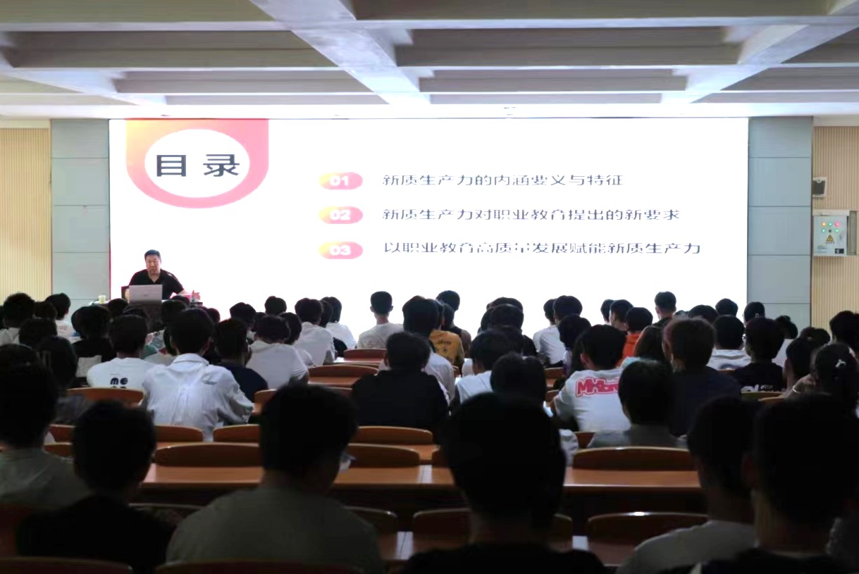 5月22日下午,我校成功举行“职业教育如何赋值新质生产力”专题讲座,活动邀请到校党委书记李林榕现场授课。我校思政教研室老师、2023级全体班主任、四系团总支书记及四系学生会成员代表、第51期业余团校全体学员参与本次讲座。
