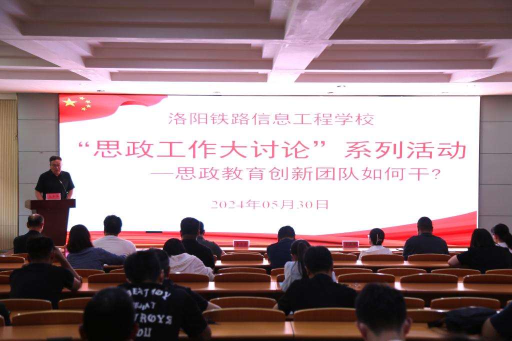 为深入学习贯彻习近平总书记重要讲话精神,积极构建“大思政课”格局。5月30日下午,我校在1号实训楼思政大讲堂召开“思政工作大讨论”系列活动第三场“思政教育创新团队如何干”专题研讨会。会议由校党委副书记李文光主持。