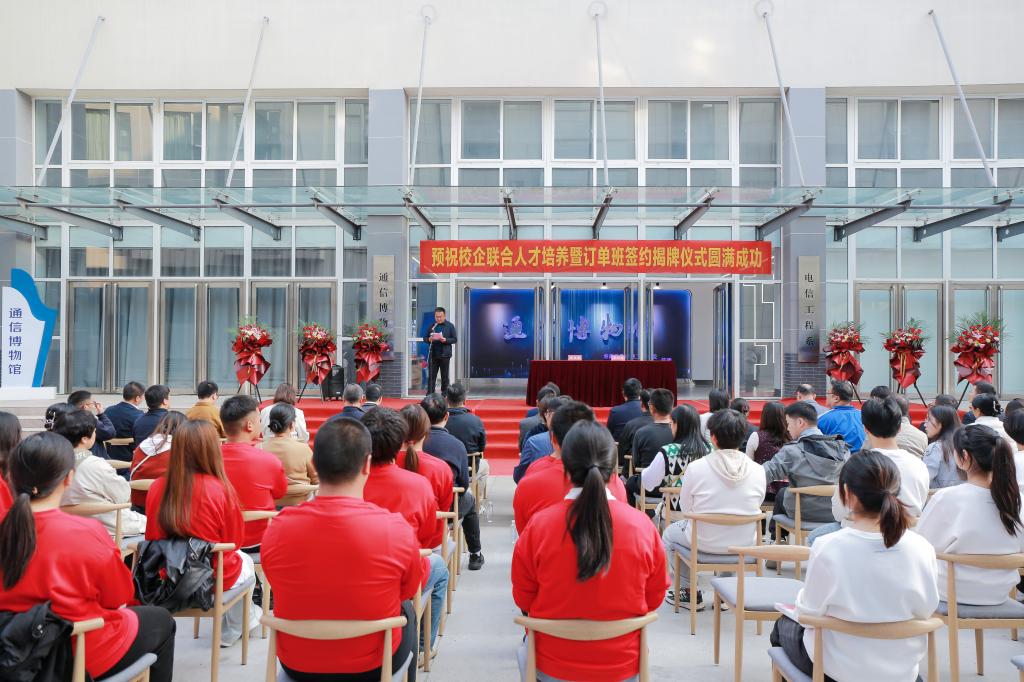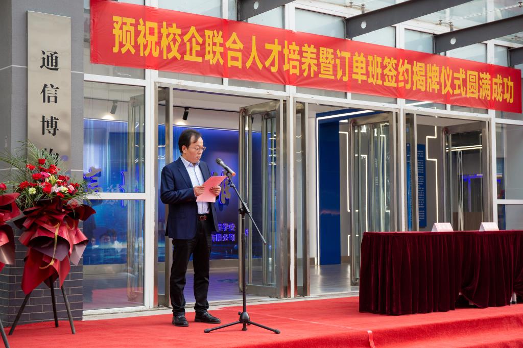 仪式上,李林榕、李文光代表学校分别与中兴通讯股份有限公司和洛阳联通公司签订人才培养协议并为两个订单班揭牌。