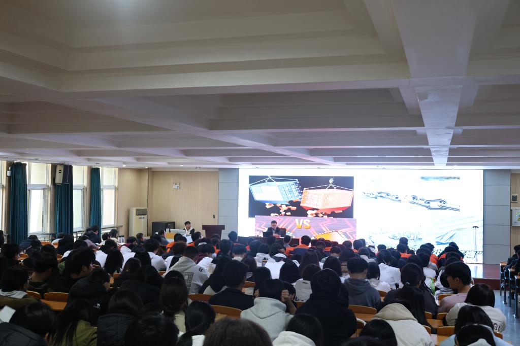 陈剑锋以《胸怀国之大者 谱写青春华章》为题,为全体师生带来了一场思想深邃、启迪智慧的思政大课,他指出,在当前世界百年未有之大变局中,国际经济力量对比正在发生深刻调整,全球地缘政治冲突进一步加剧,中美竞争关系成为世界格局调整的显著特征,全球南方向东看已成新气象。目前我国正处于中华民族伟大复兴的关键时期,挑战和机遇并存,要聚焦中国式现代化的内涵与实践,坚持守正创新,以科技突破为重点推动新质生产力发展,助力产业结构升级和经济体系优化。