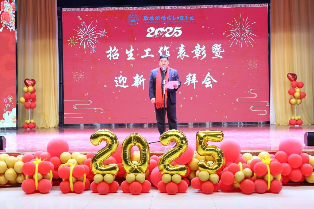 团拜会以表彰和文艺演出相结合的方式进行。副校长尹亚波宣读了《关于表彰2024年度招生先进个人和先进部门的决定》。校领导对招生先进个人和先进部门进行了颁奖。