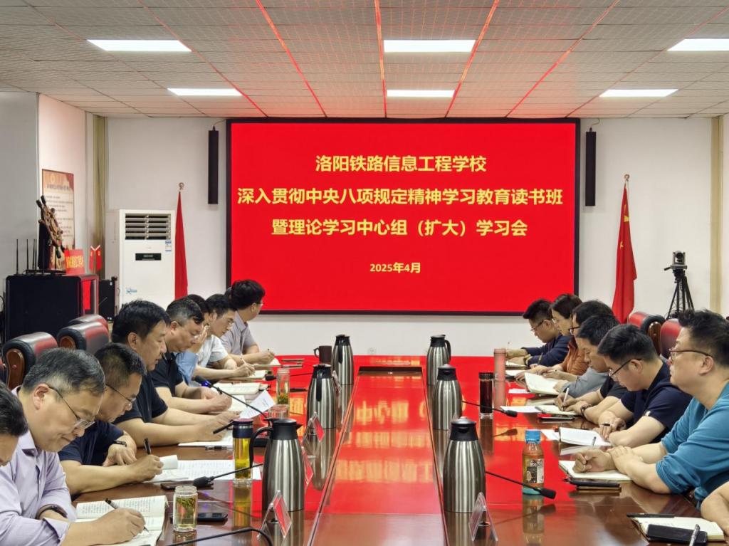 4月11日、4月16日,洛阳铁路信息工程学校召开深入贯彻中央八项规定精神学习教育读书班暨理论学习中心组(扩大)学习会。读书班重点围绕中央八项规定及其实施细则精神进行深入学习研讨。学校班子成员、党委委员,中层正职参会。读书班由党委书记李林榕主持。