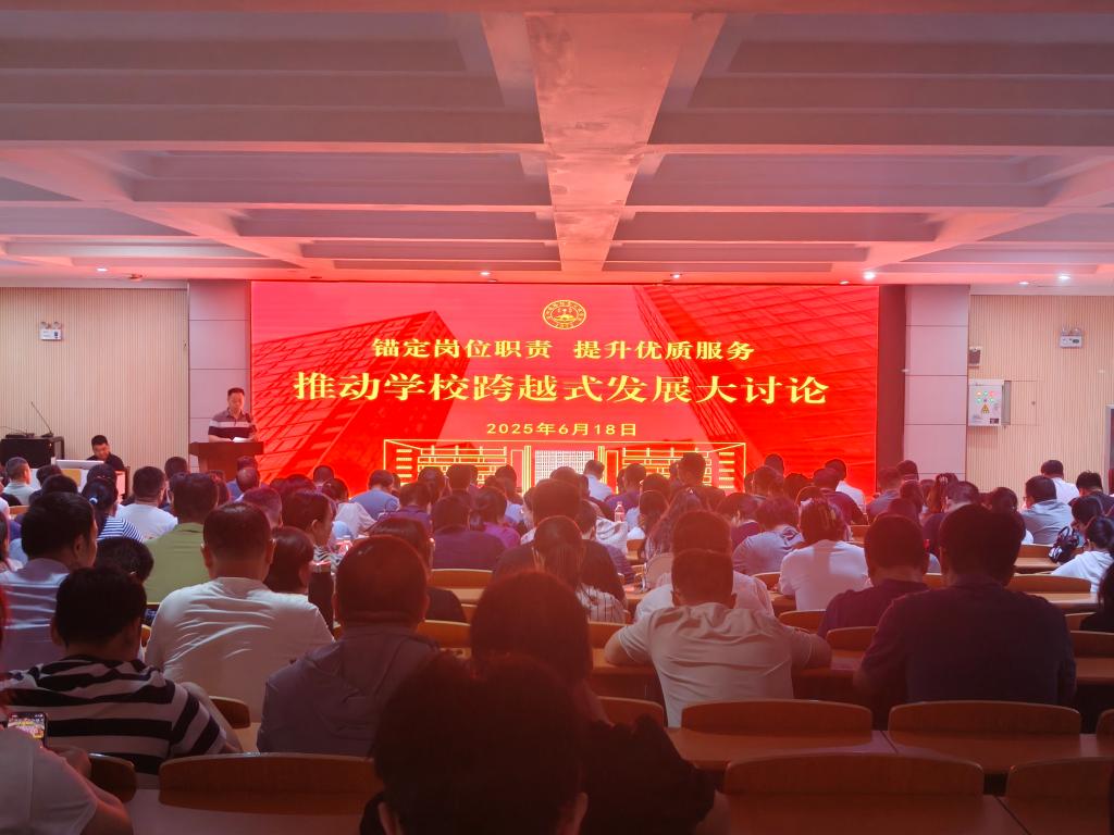 为进一步提升各行政科室职工的服务意识、业务能力和责任担当,激发职工的工作积极性与创造性,为实现学校跨越式发展提供强大动力。6月18日上午,学校在思政大讲堂举行“锚定岗位职责、提升优质服务,推动学校跨越式发展”大讨论活动。学校党政班子成员及全体教职工参加,活动由副校长史亚非主持。
