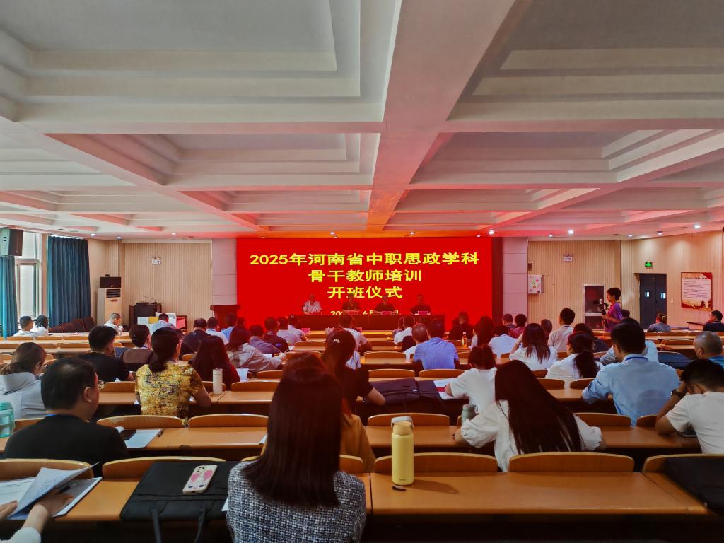深入学习贯彻习近平总书记对学校思政课建设作出的重要指示精神,全面提升中职思政教师队伍核心素养,6月20日,2025年河南省中职思政学科骨干教师培训在我校开班。河南省教育厅职成教处副处长平奇出席开班式并讲话,我校党委书记李林榕,校长、党委副书记于庆斌出席开班仪式,仪式由党委副书记李文光主持,来自全省的60余名中职思政骨干教师参加。