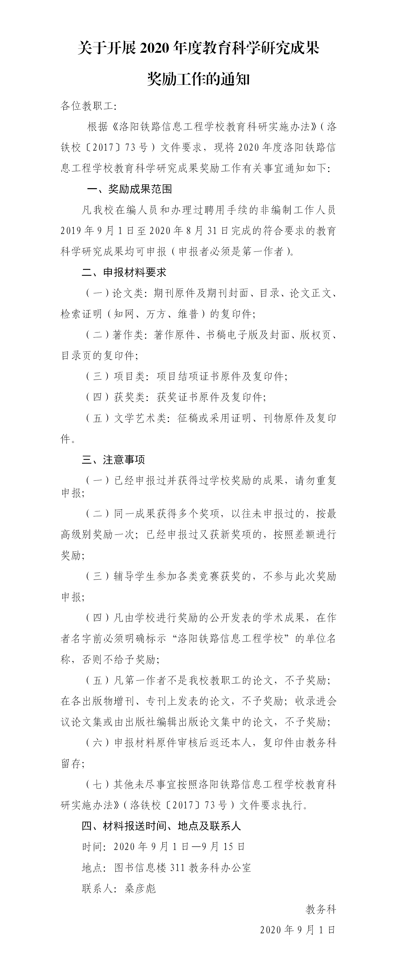关于开展2020年度教育科学研究成果奖励工作的通知