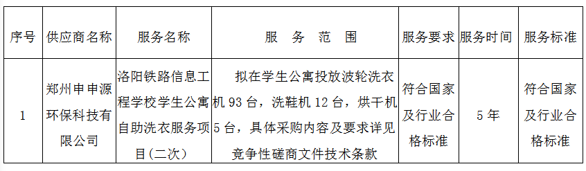 2、采购项目名称:洛阳铁路信息工程学校学生公寓自助洗衣服务项目(二次)