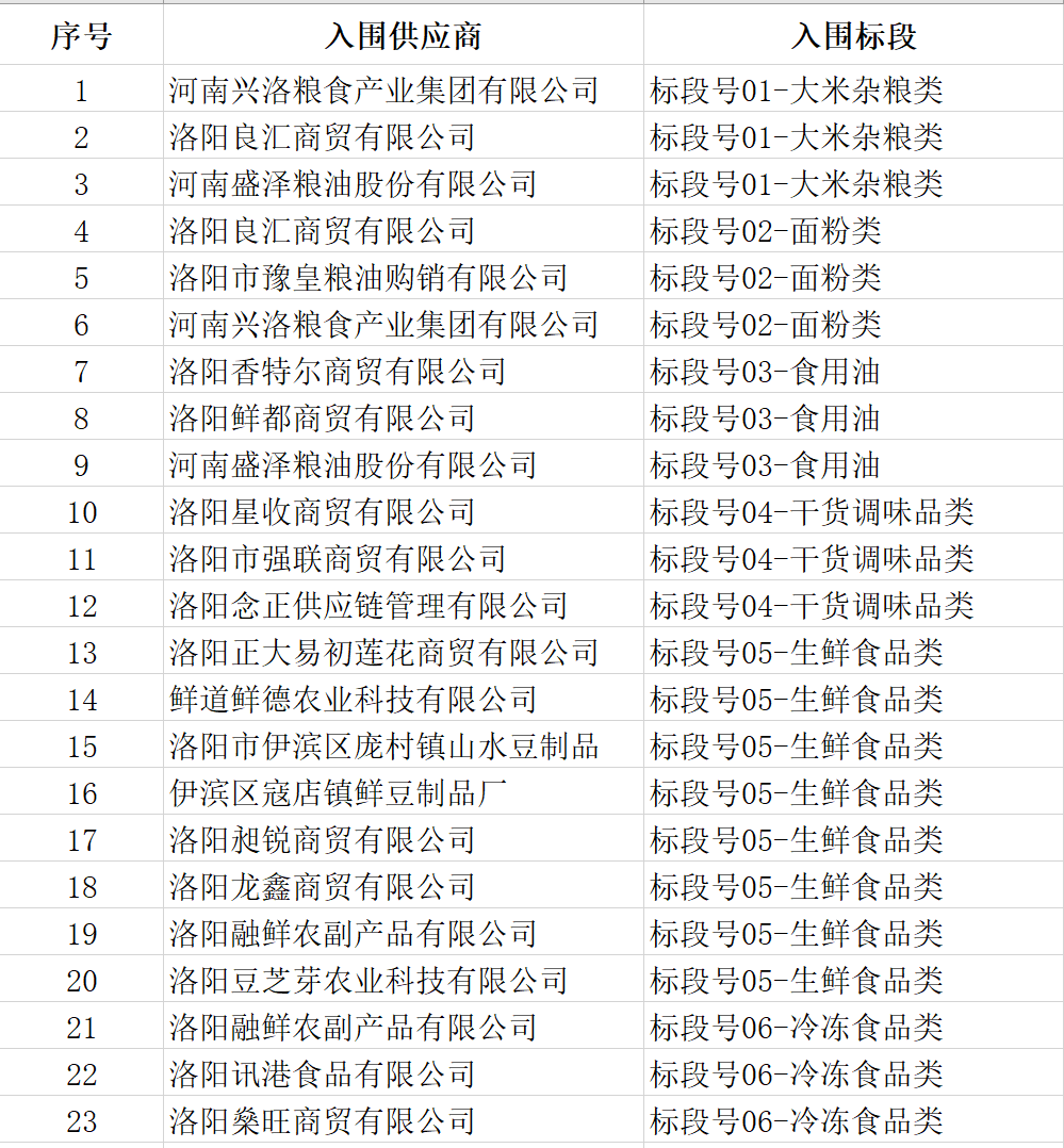 一、 食品类物资供应项目遴选结果