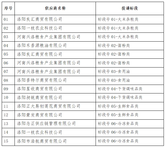 洛阳铁路信息工程学校2025年8月—2026年8月食品类物资供应项目遴选工作已经结束,现将遴选结果公示如下:
