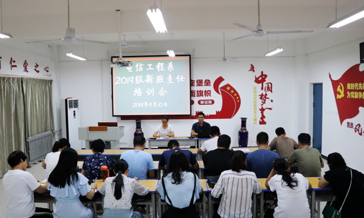 9月10日下午,电信工程系在2号教学楼党员活动室举行了2019级新班主任培训会。电信工程系主任张波、系副主任李琼及2019级全体班主任参加了本次会议。
