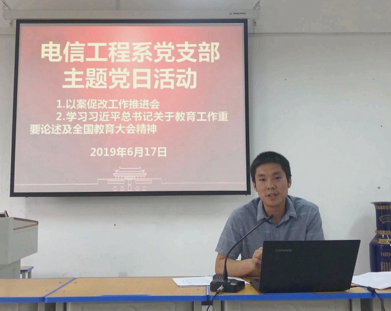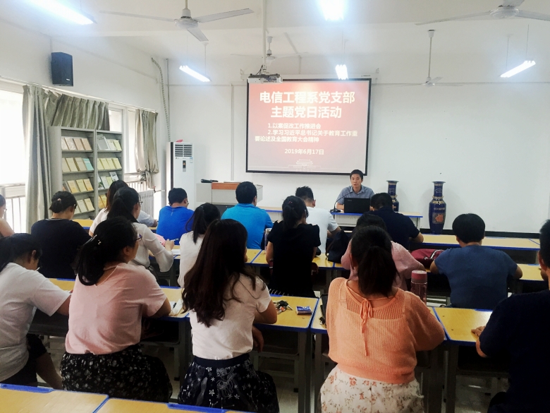 6月17日下午,电信工程系党支部在2号教学楼231教室举行了以案促改工作推进会暨学习全国教育大会精神主题党日活动。