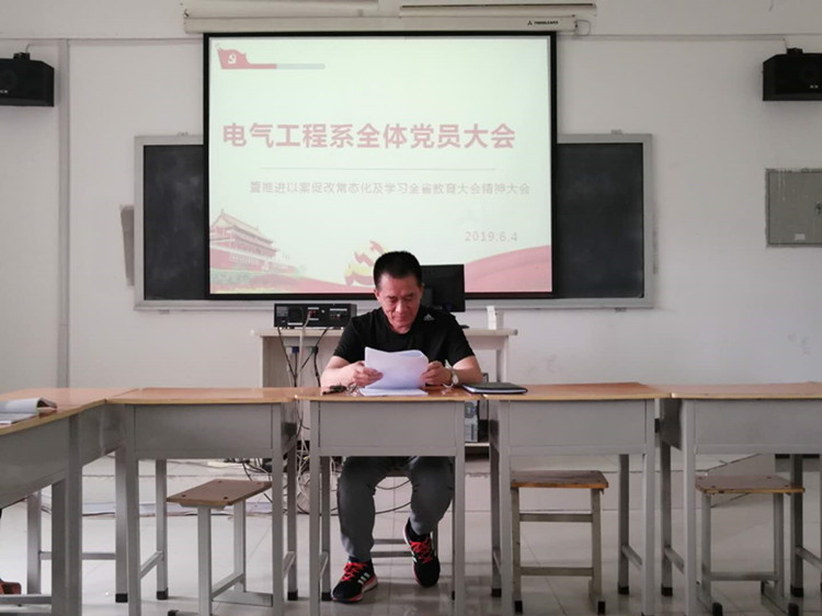 6月4日,电气工程系在一号实训楼302教室召开党员大会,系全体党员参会,会议由系支部书记段云冬主持。