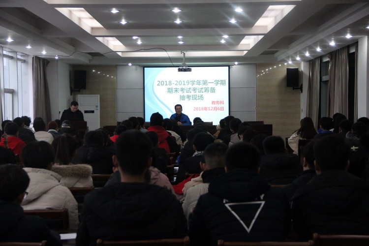12月7日下午,教务科在图书信息楼三楼会议室举行期末统考科目抽考活动,教务科领导及各班班长或学委参加。