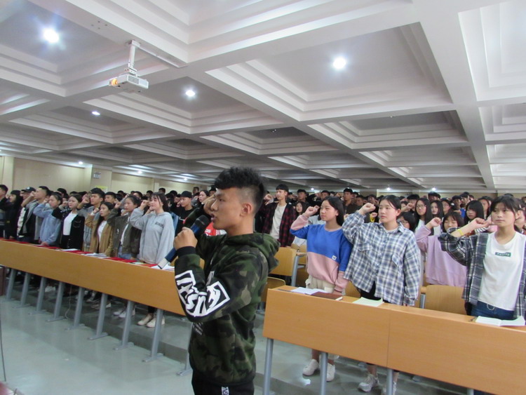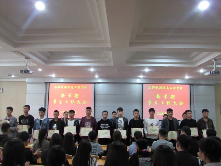 伴随着雄壮有力的国歌声,团学干部大会正式开始。会上,校团委副书记马瑞和学生科副科长李臻先后宣读了《关于表彰2018年迎新工作先进个人的通知》和《关于向铁鹰队学员颁发学生教官聘书的通知》,对在迎新工作表现突出的学生干部和军训中表现优秀的学生教官分别给予了肯定和表彰。随后是颁发部长聘书仪式,向各部部长颁发聘书不仅是对学生干部工作的肯定,更是树立典型,激发广大学生干部向先进学习的必要之举。仪式结束后,部长代表鲁振奎带领全体成员举行了学生干部宣誓仪式,承诺一定会牢记“全心全意为学生服务”宗旨,为洛铁的不断发展努力奋斗。活动最后,校团委书记、学生科科长张波做了以“为什么要做学生干部”的主旨讲话,对学生干部提出了具体要求和殷切希望。