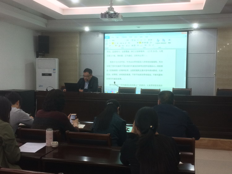 4月24日,教务党支部组织全体党员集中学习十九大修订党章及中央八项规定实施细则精神。