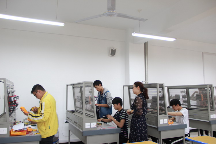 4月19日下午,教务科在2号教学楼四楼轨道交通信号基础理实一体教室举行我校2018年维修电工技能大赛,教务科副科长李力厚到场观摩。