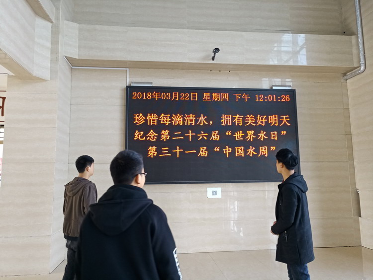 该宣传活动由总务科组织,学生科团委积极配合。活动通过电子显示屏、校园展板、黑板报、宣传横幅等多种宣传渠道向广大师生介绍节水知识,倡导大家树立节水理念,做一个节水践行者。