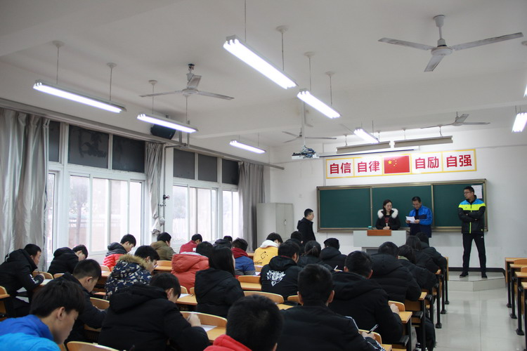 1月24日上午,我校2017级全体学生在90个考场中顺利完成2017—2018学年第一学期期末部分科目统考,校领导王怀钦、教务科负责人段云冬、李力厚到场巡视。