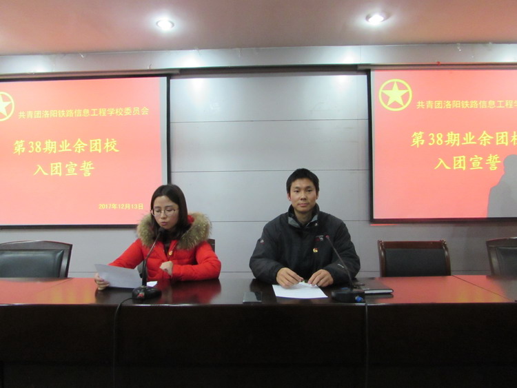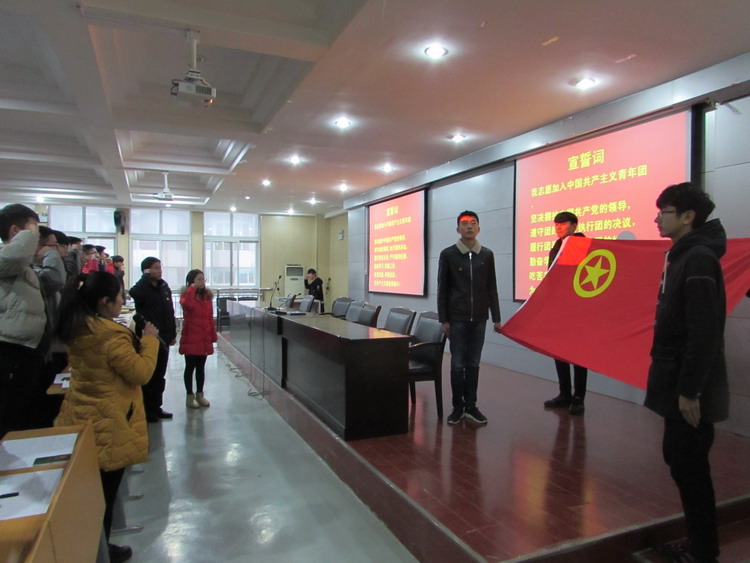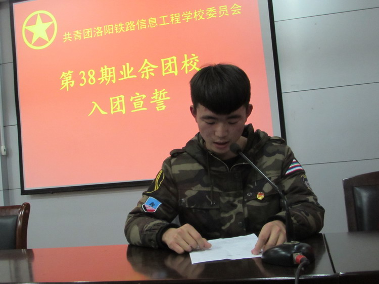 ——第38期业余团校新团员入团宣誓 12月13日,校团委在二楼报告厅举行第38期业余团校新团员入团宣誓仪式。 团委书记张波、团委老师朱亚利和新入团的242名新团员参加了入团仪式,仪式由团委副书记马瑞主持。 经过第38期业余团校团课培训学习最终通过结业考试的242名同学顺利加入中国共产主义青年团,在激昂的团歌声中入团仪式正式开始,在鲜艳的团旗下,佩戴团徽的新团员们庄严宣誓,新团员代表胡义迪同学作了发言,他表示非常荣幸成为一名光荣的共青团员,今后一定严格要求自己,不断进步,成为团组织中优秀的一员。最后,张波书记对新团员们提出要求,他希望同学们要言行一致,在学生群体中起到模范带头作用,更要遵守校纪校规,勤奋学习,树立远大的理想,坚定的信念。 最后,新团员们共同观看由共青团中央出品《入团第一课》教育视频。 此次新团员入团仪式标志着我校团员队伍不断壮大,校团委将继续深入开展各项后续工作。 供稿、摄影:朱亚利