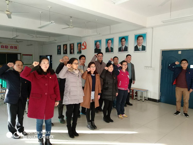 活动开始前,寇斌同志首先传达了《我校关于深入学习宣传贯彻党的十九大精神进一步推进“两学一做”学习教育常态化制度化工作安排》内容,指出了重温入党誓词的重要意义。随后,组织委员张玉锋同志带领大家一起面对党旗重温了入党誓词,一句句承诺,一行行誓言,提醒着每位党员入党的动机和彰显了中国共产党的初心,坚定了我们的伟大使命。