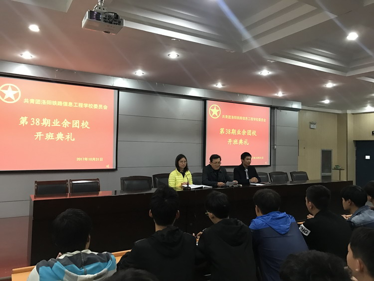 青春献礼十九大,不忘初心跟党走,2017年10月31日,400名进步青年怀揣着对共青团、对党的向往,在报告厅共同迎来“洛阳铁路信息工程学校第38期业余团校”开班典礼。校党委书记陈云峰,团委书记、学生科科长张波,团委副书记、学生科副科长马瑞出席大会。会议由马书记主持。
