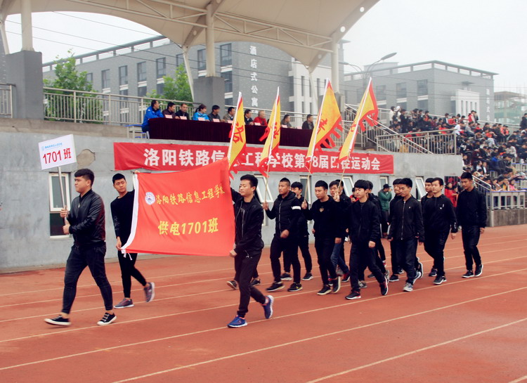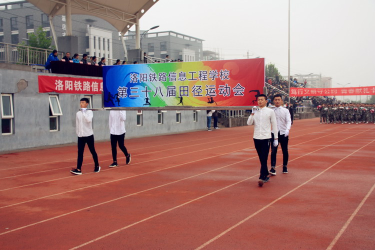 党委书记陈云峰在开幕式致辞中要求全校师生要勇于拼搏,赛出风格,精神抖擞地为党的十九大召开献礼。校长韩耀煌宣布:“洛阳铁路信息工程学校第三十八届田径运动会现在开幕!”运动会正式开始。