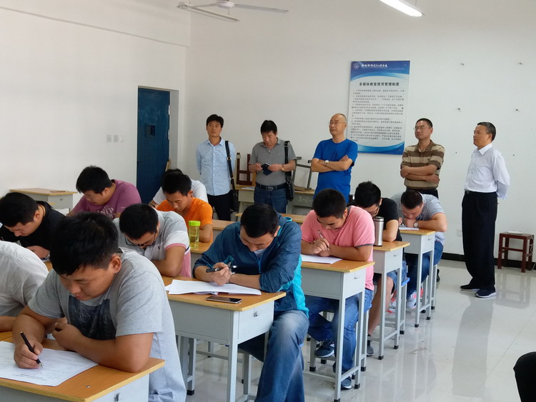 9月7日上午,教务科在二号实训楼四楼多媒体教室对中铁电气化局集团第三工程有限公司通信分公司短训班进行阶段测试,第三工程有限公司石段长、调度中心王主任一行四人在副校长杨建光、教务科副科长李力厚陪同下巡视了考场。