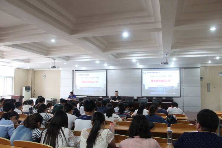 9月19日下午,教务科在一号实训楼二楼多功能报告厅召开2016---2017学年第一学期重难点工作部署会,教务科负责人及全体教师参加。