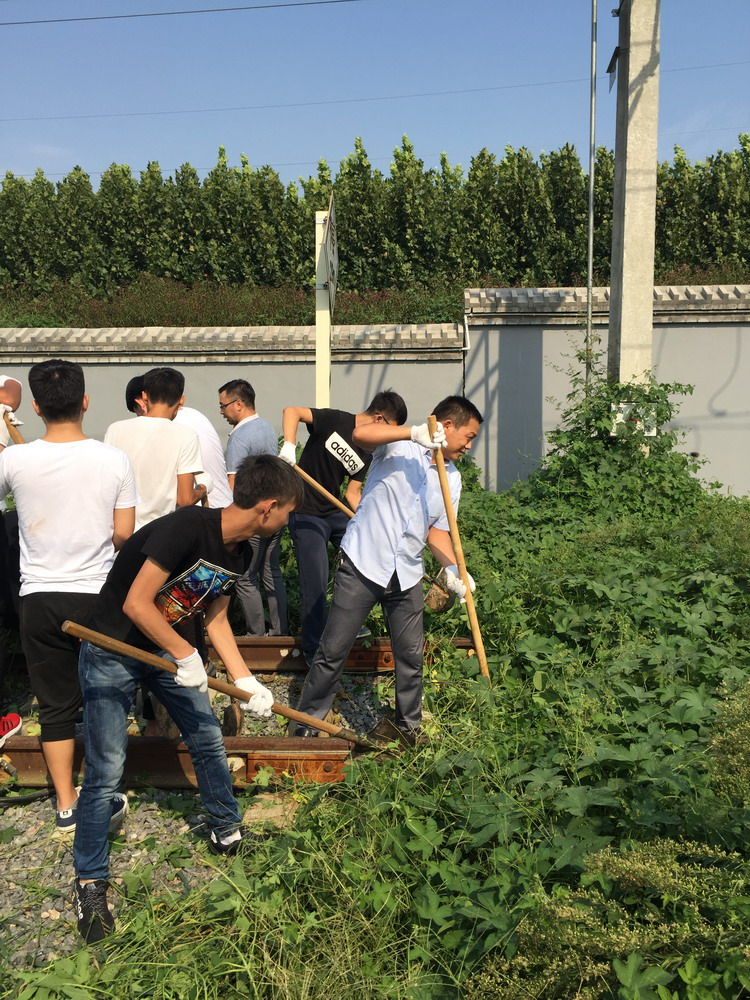 8月30日,为了营造良好的实验实训环境,二号实训楼组织青年教师和部分学生同学对综合演练场进行清扫整理。 放假期间,站场南段股道内杂草丛生,已将3个股道及其地面上的信号箱盒和电缆设备全部覆盖,影响了教学工作的展开。二号实训楼青年教师带领1522班的同学们,利用课余时间对杂草进行了清理,大家不怕脏不怕累,顶着烈日,最终完成了3个股道的清理任务。下一步将继续组织人员对演练场其他部分进行清理整顿,保障教学工作的顺利进行。