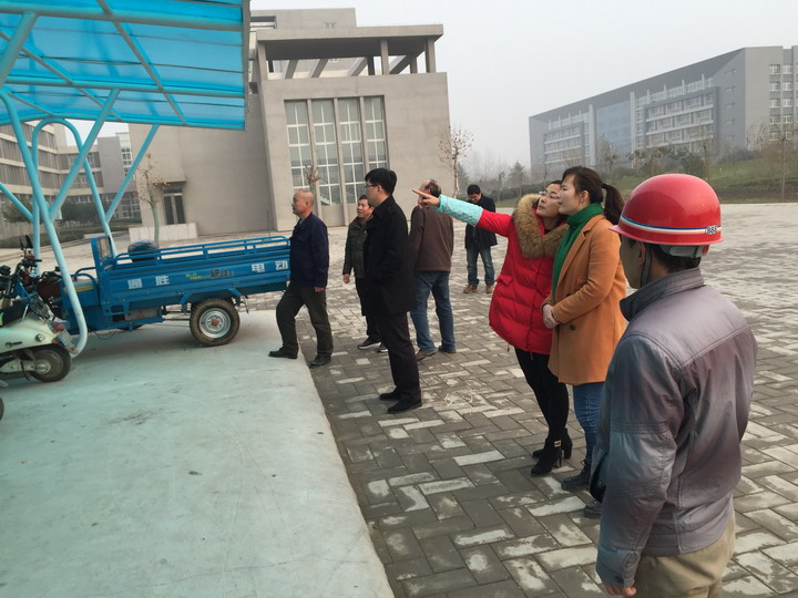 2015年12月9日上午,我校对电动车停车棚进行验收。总务科副科长王罡、电工尹亚东,施工单位项目经理李振宪,新建办主任王树军、副主任邱智铖、现场工程师滕建义、马琳珊、杨凯丽、王欢组成验收小组参加本次验收。